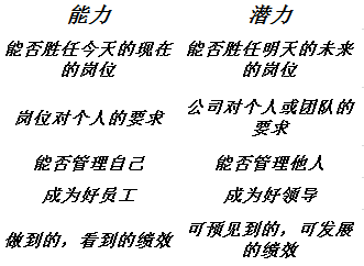 先前我们已经探讨过什么是潜力。所谓潜力,每个人的定义不同,我个人的理解是“胜任更大或更高的职业或工作中绩效要求的能力特质与个人技能”。也就是说,潜力是为未来的工作而需要发展出来的特质与技能。潜力和能力最大的不同之处是: